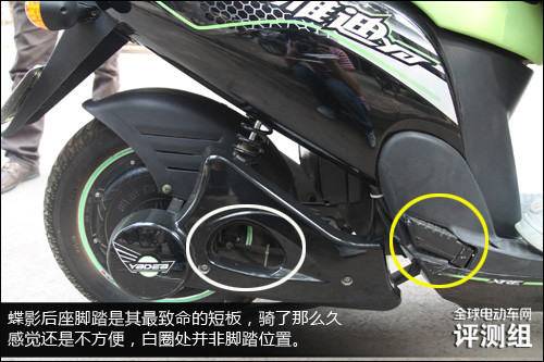 另外 说一下..大家都关心的动力,首先蝶影的整车其实外形和车头转向感觉和电摩相同,非常结实方向很重,跟简易车型比起来天壤之别。启动提速方面非常强进,这也是我为什么选择它的原因,小编也是这么觉得,和600W电摩电机的雅迪熊猫比起来最为明显。