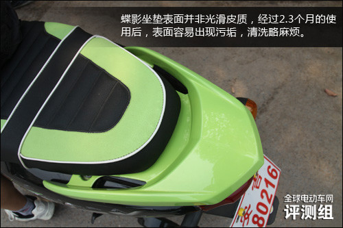 舒适性方面:鞍座相比皮质座椅要偏硬点,清洁起来也不方便,主要表面是细针织状,表面容易产生污垢。后排乘客乘坐脚踏板太小靠前,摆放不能算舒适。车在坑坑洼洼的路面高速通过也很平稳,不错耶!刹车偏软,需要在进一步升级。不过对于城市骑行的人来说,这些足以够用。外观烤漆经过3个多月的风吹日晒还能如此闪亮有光泽,good!