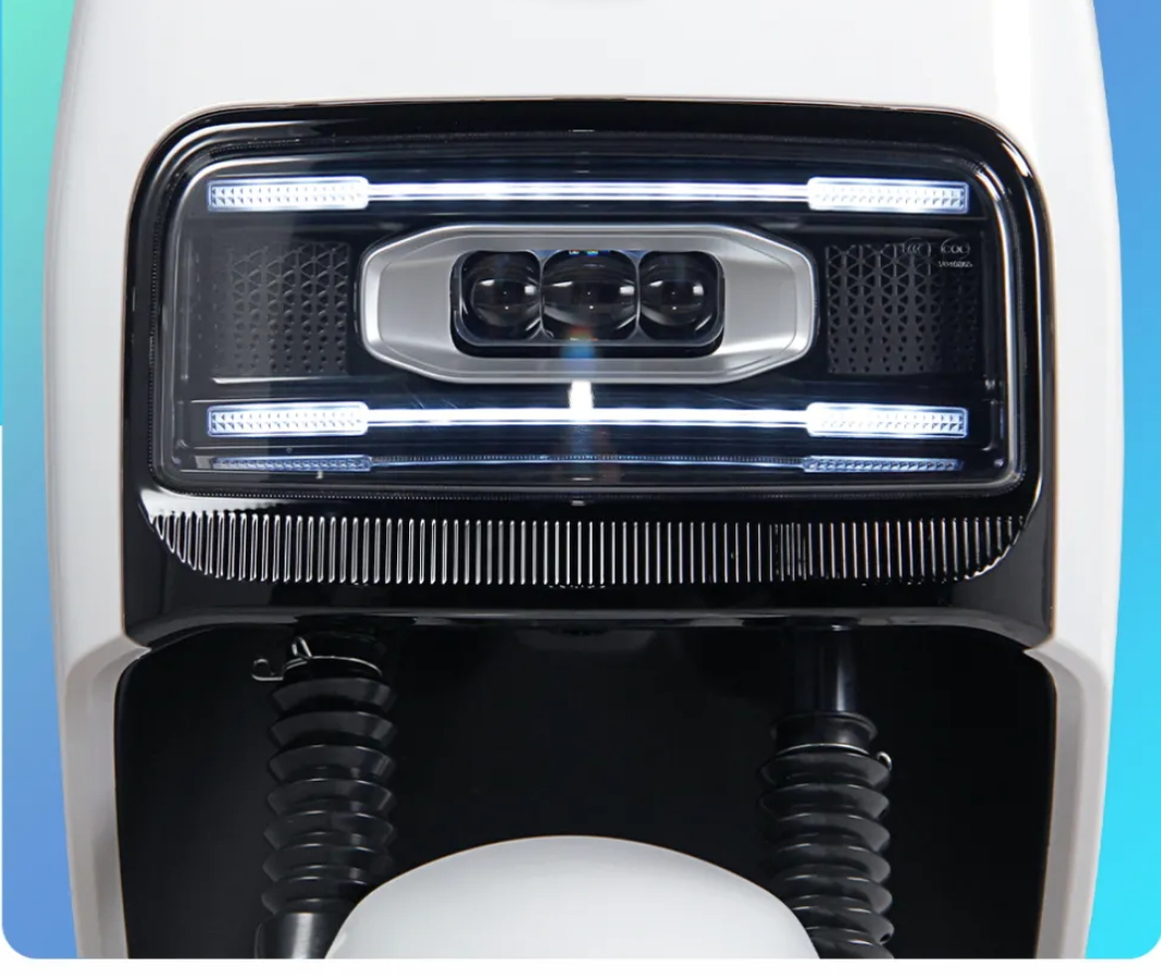 该车拥有三透镜大灯,视野宽,低光衰,使用2年亮度如新;6寸黑莓液晶仪表,方方正正,骑行数据,一目了然;打开鞍座,只需长按3秒闪电标按键,鞍座自动开启,一改传统钥匙操作;32L大座桶,能容纳更多物品。